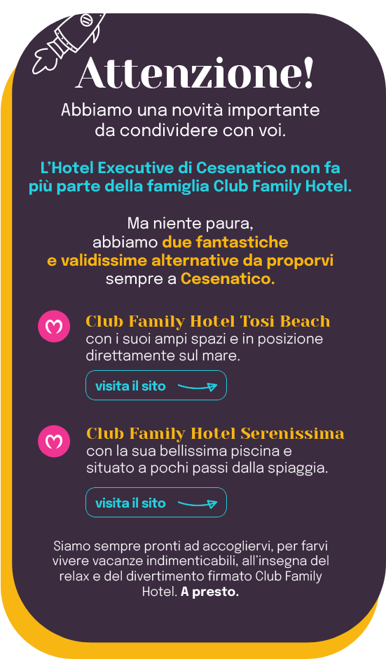 Family Hotel Executive di Cesenatico al nostro secondo anno e non posso che riconfermare la recensione precedente Exageratamente Eccellente. Abbiamo due bambini minori di 18 anni e abbiamo pagato solo 2 adulti ma ricevuto in ugual misura un soggiorno completo per 4 persone, La formula All Inclusive®Open Bar è spettacolare bevande […]
